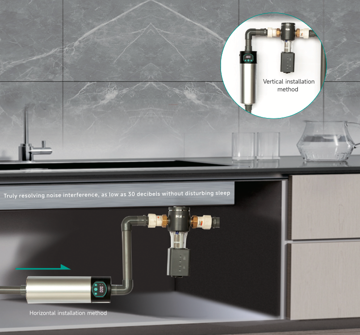 The water-cooled shielded motor eliminates the noise caused by traditional water pump fan cooling. Water can quickly cool down the water supply motor, protect the water pump, and isolate noise, resulting in a longer service life of the motor.